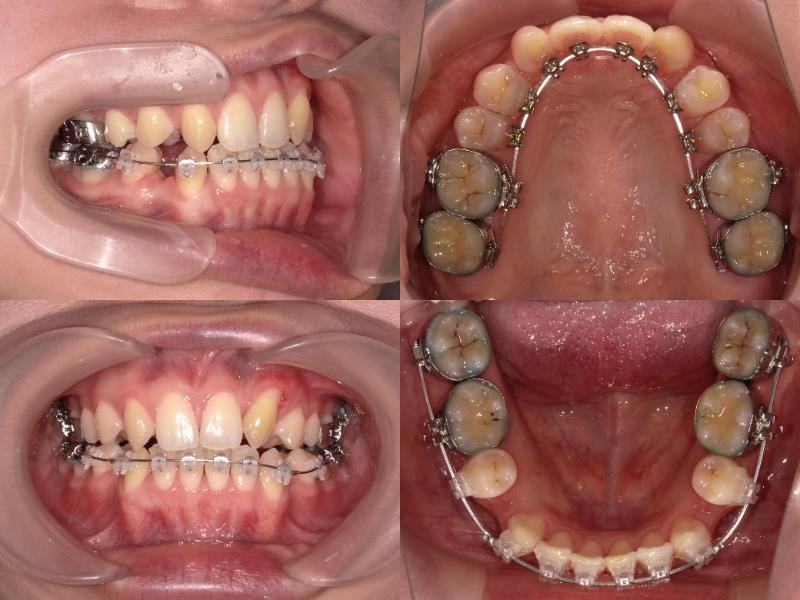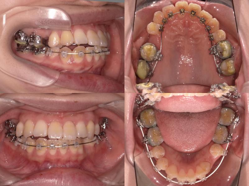 上下左右5番を抜歯し、上顎6番を口蓋正中縫合部からアンカースクリューで固定。