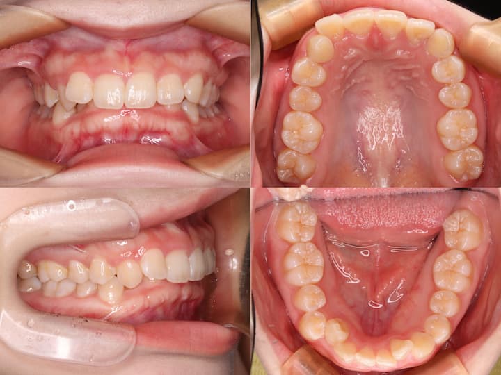 口唇部の突出感が認められなかったため、下顎は非抜歯とし、上顎のみ左右第一小臼歯を抜歯する治療計画を採用しました。