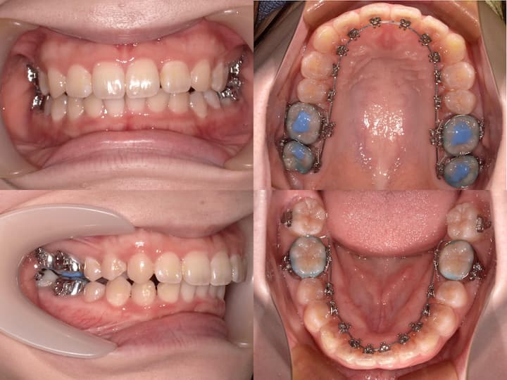 ハーフリンガル矯正装置を採用し、上顎は舌側矯正装置(リンガルブラケット)、下顎は唇側矯正装置(ラビアルブラケット)を使用しました。上顎大臼歯の固定とアンカレッジコントロール