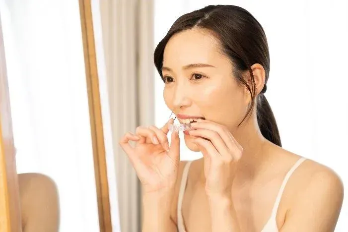 従来のワイヤー矯正と異なり装置の見た目が目立たず、取り外しが可能というメリットがあります。