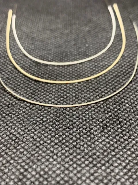 材質にはNiTi(ニッケルチタン)、SS(ステンレススチール)、TMA(チタンモリブテン合金)があり、色調はオフホワイトで光沢があるもの、ワイヤーの見える面のみ白くコーティングしたもの(摩擦抵抗を減らすため)、またつや消しの白で色が剥がれづらいものなどがあります。