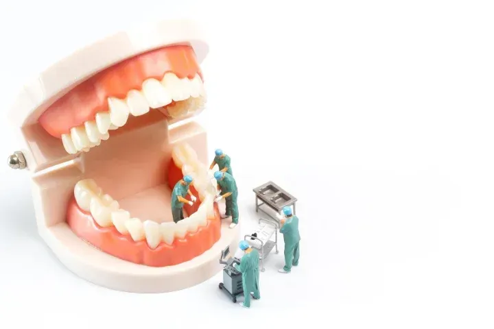 歯ぐきの中に「歯槽骨(しそうこつ)」という歯を支える骨があり、歯槽骨と歯の根っこの間には「歯根膜(しこんまく)」と呼ばれる弾力性のある薄い膜が存在します。