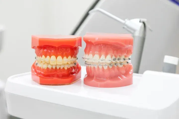 食べ物以外にも、矯正装置で使用している金属が原因でアレルギー性口内炎を生じることもあります。