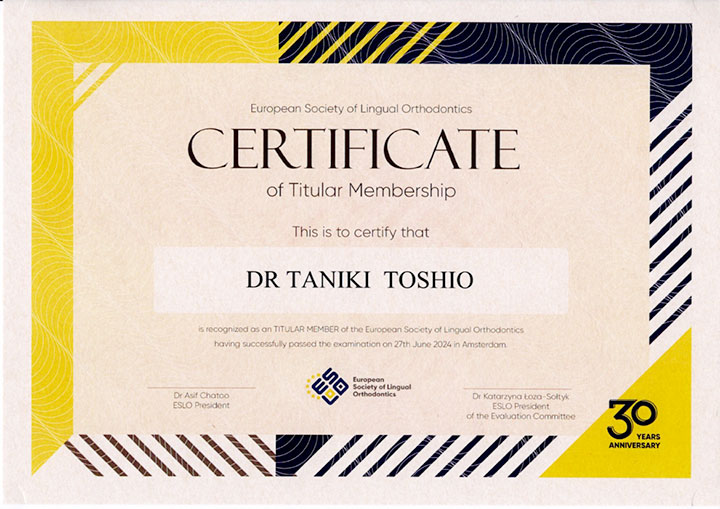 - 2018年 ヨーロッパ舌側矯正歯科学会認定医取得