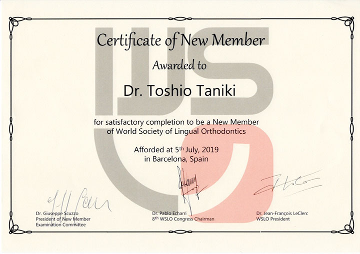 - 世界舌側矯正歯科学会認定医